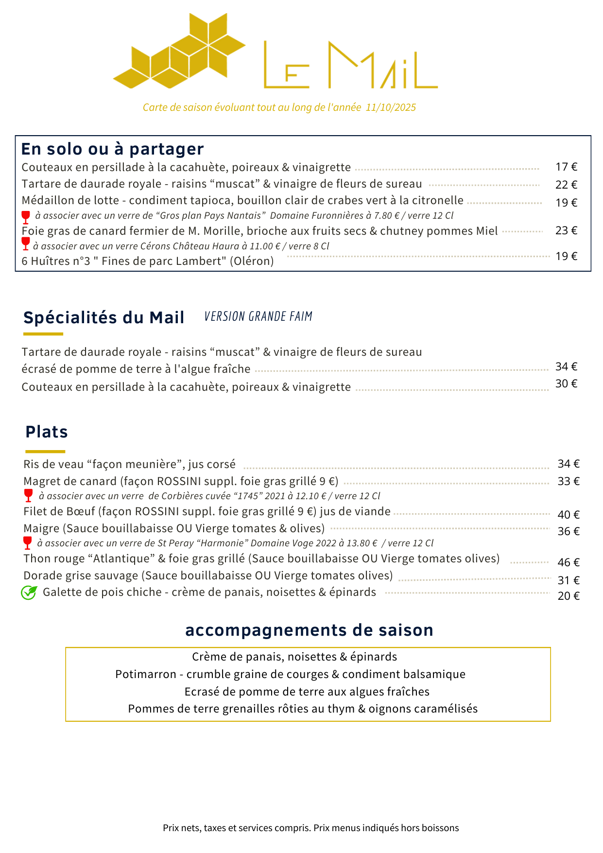 Conçue à partir des produits frais du jour, notre carte change continuellement pour vous proposer un moment de plaisir avec vue sur l'océan.